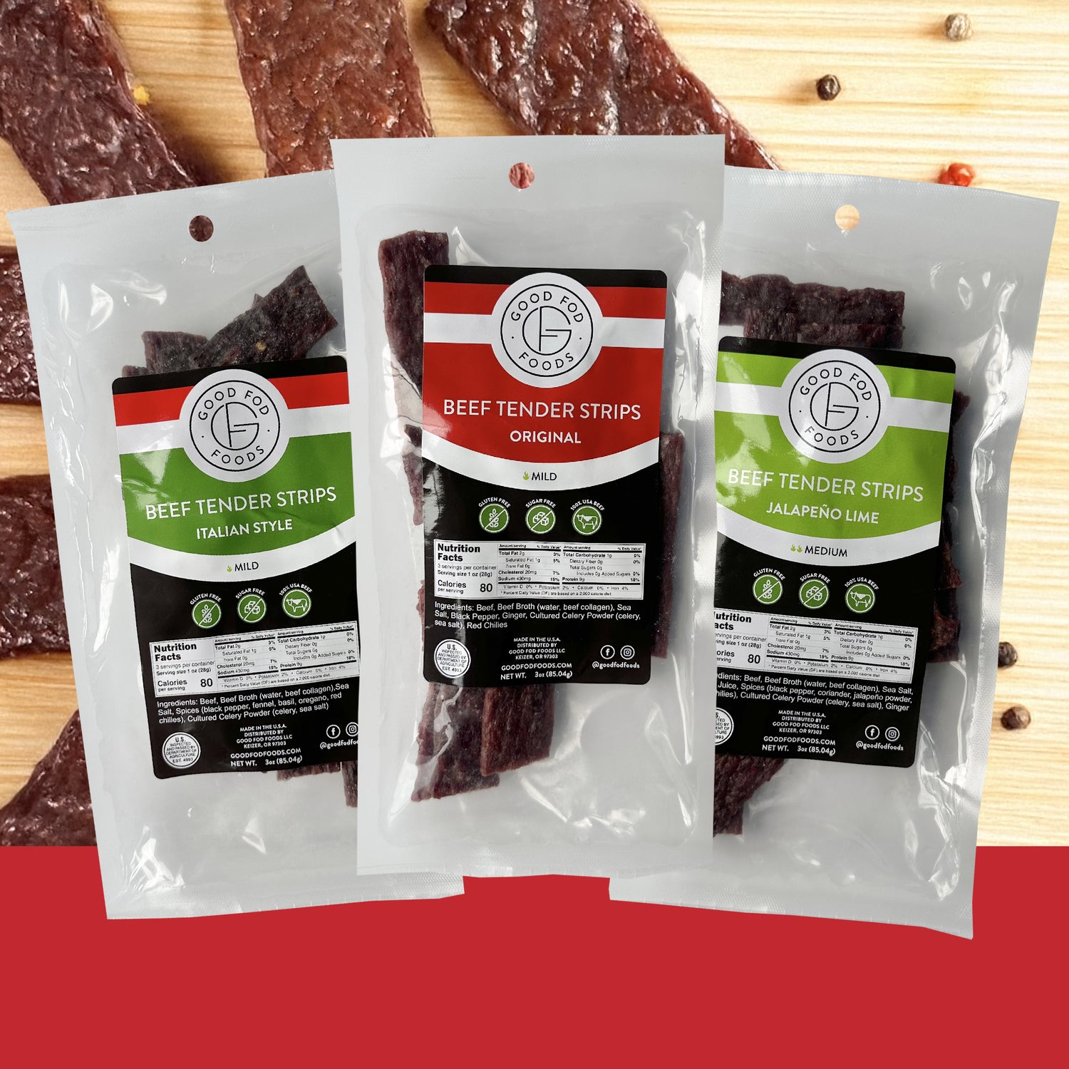 Our Beef Tender Strips are packed with bold flavor and made to be easy on your stomach. Tender, satisfying, and free from common gut triggers, they’re a clean, craveable snack you can count on—anytime, anywhere.